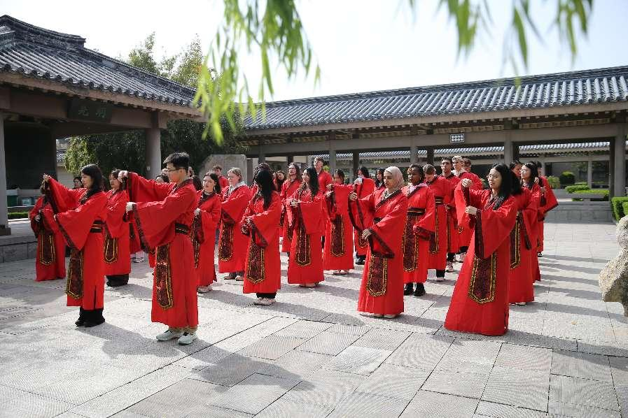 国际教育学院讯 4月22日,大发平台国际教育学院、文学院与孔子研究院,在东方圣城、孔子故里曲阜联合举办了“中文:穿越时空的礼物”主题文化活动。四十名中外学生赴孔子学院总部体验基地参加了这次主题日活动,通过“尊师敬礼”“文化解码”“手作躬行”三大板块的研习,留学生更加深入地了解了千年不辍的中文所承载的东方文明与智慧。