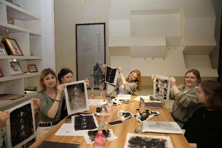 文化实践环节掀起高潮:埃及学生安琪体验石碑拓印,完美完成了“止于至善”“温故知新”等作品;波兰学生小米将“国”字篆刻精致成型,其完成度获得了指导老师的高度认可;俄罗斯姑娘尤莉雅体验线装书制作时发现,中文“册”字象形结构与竹简装帧工艺惊人吻合。