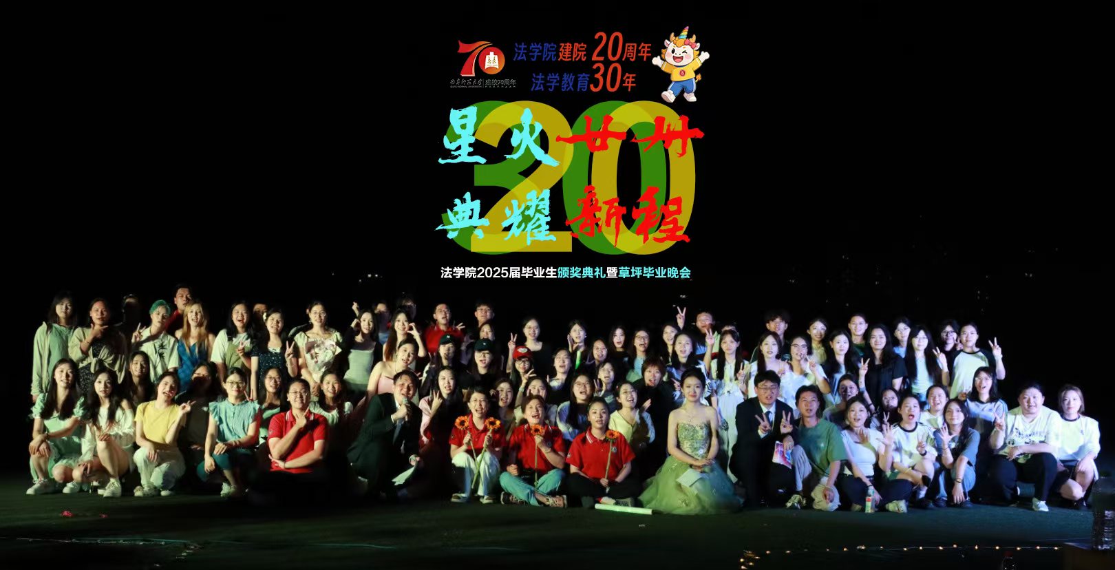 法学院讯  六月的晚风轻抚过西操场的草坪,星星灯串在暮色中渐次亮起。6月15日,法学院2025届毕业生们踩着星光走来,在缀满校徽与院徽的发光球签到处驻足。一场名为“星火廿卅,典耀新程”的毕业晚会正在这里等待着他们。在庆祝学校70华诞、学院建院20周年之际,师生们齐聚一堂,以这场融合颁奖典礼、文艺演出与篝火晚会的沉浸式思政课,致敬青春、展望未来。