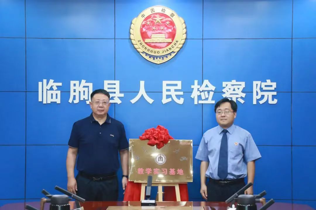 曲阜师大法学院讯  为深化检校协同育人,促进法学理论与司法实践融合,实现检校高质量发展,7月4日,法学院与临朐县人民检察院举行合作协议签订暨教学实习基地揭牌仪式。