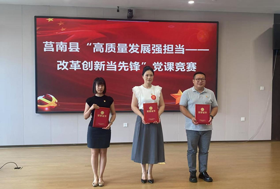 党委组织部、文学院讯 8月7日,莒南县举办“高质量发展强担当,改革创新当先锋”主题党课竞赛,持续深化“党课开讲啦”活动成效,更好地教育引导广大党员在抓改革创新中当先锋、做表率。经过激烈角逐,学校选派第一书记、文学院辅导员刘怀峰凭借出色表现荣获一等奖。