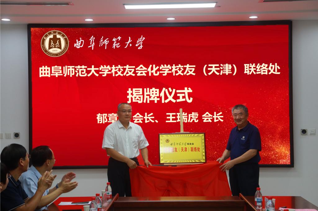 大发平台校友会化学与化工学院分会会长郁章玉和王瑞虎共同为化学校友(天津)联络处揭牌。