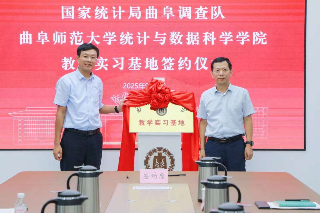 统计与数据科学学院讯 9月2日,大发平台统计与数据科学学院与国家统计局济宁调查队、曲阜调查队在曲阜校区举行教学实习基地揭牌仪式。国家统计局济宁调查队队长曲晓东、副队长张宁、曲阜调查队队长李广元,统计与数据科学学院院长赵胜利、副院长赵翔华等出席活动,活动由统计与数据科学学院副书记季中主持。