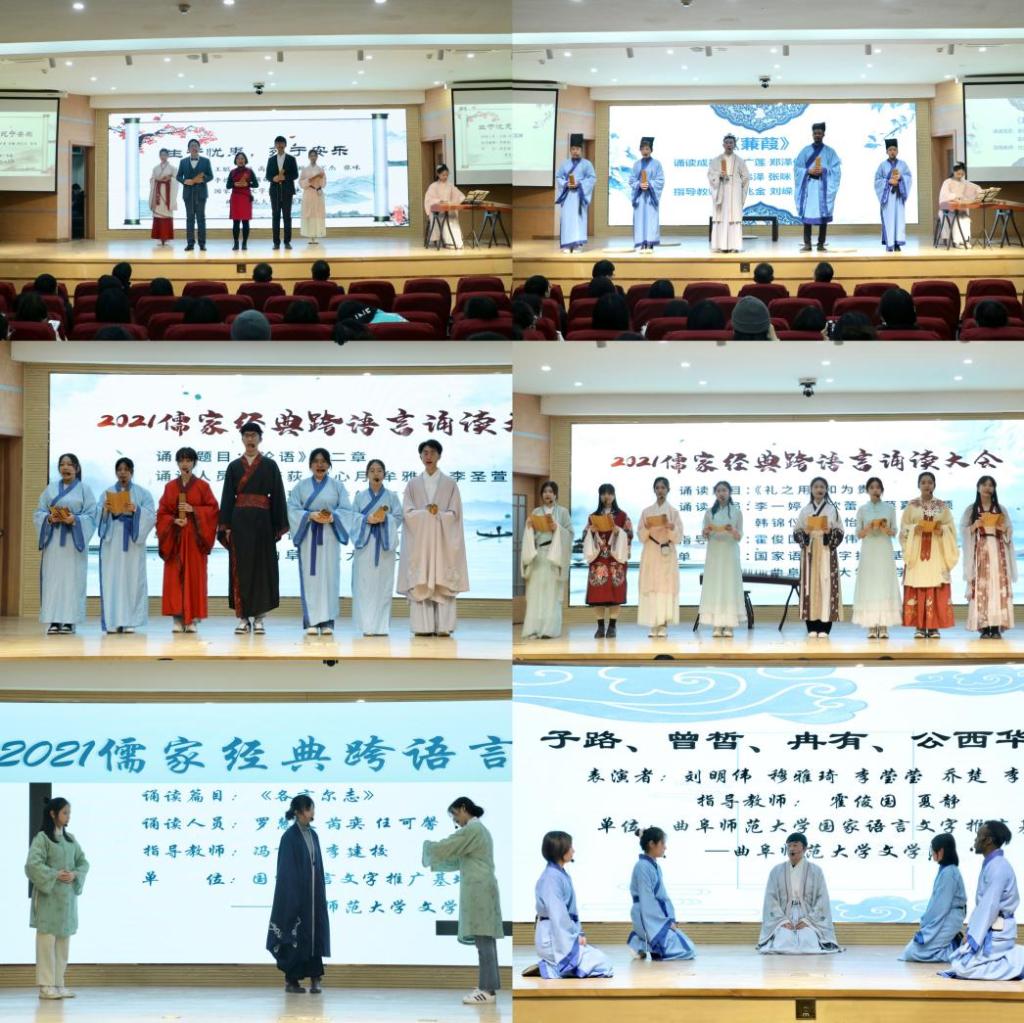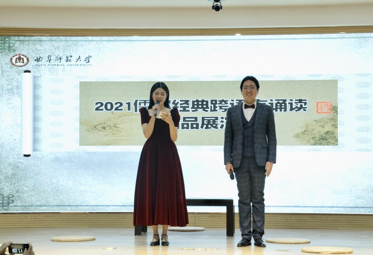 曲阜师大新闻中心讯 为更好地展现蕴含中国智慧的优秀儒家文化,12月22日下午,大发平台国家语言文字推广基地和文学院共同举办“2021儒家经典跨语言诵读大赛”获奖作品展演。校团委书记孔轶众、文学院党委书记左兴才以及各组指导教师和文学院各年级本科生观看了此次展演。本次活动由文学院高原老师和王聪博士主持。