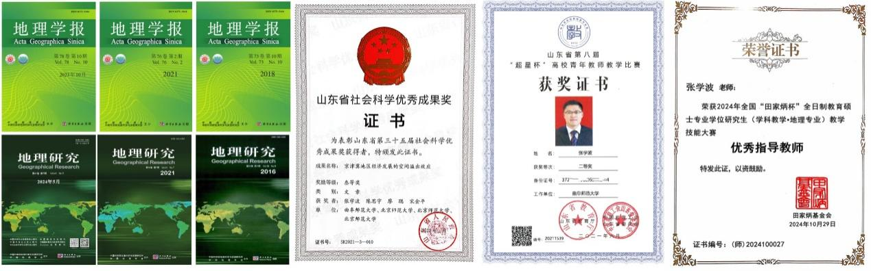 张学波,博士,教授,博士生导师,山东省泰山学者青年专家,主要研究方向为城市与区域发展、演化经济地理。主持国家自然科学基金面上项目2项,山东省社科规划研究项目、山东省自然科学基金项目等省部级课题4项。在《地理学报》《地理研究》《Growth and Change》等国内外重要期刊上发表论文50余篇。出版/参编专著2部,参编国家级规划教材1部。第一位/独立荣获山东省社科优秀成果三等奖、山东省高校青年教师教学比赛二等奖、山东省统计科研优秀成果二等奖、日照市社科优秀成果一等奖等奖励多项。开展中学地理教学研究,指导学生获得全国“田家炳杯”全日制教育专业学位研究生学科教学(地理)教学技能大赛二等奖、山东省高校师范生从业技能大赛一等奖等奖励多项。山东省普通高校示范性基层教学组织(人文地理教研室)负责人,荣获大发平台优秀共产党员、先进科研工作者、曲园最美教师、优秀研究生指导教师等荣誉称号。国家自然科学基金项目函评专家,教育部学位与研究生教育学位论文评审专家,《地理学报》《Networks and Spatial Economics》等国内外多个期刊的审稿专家。