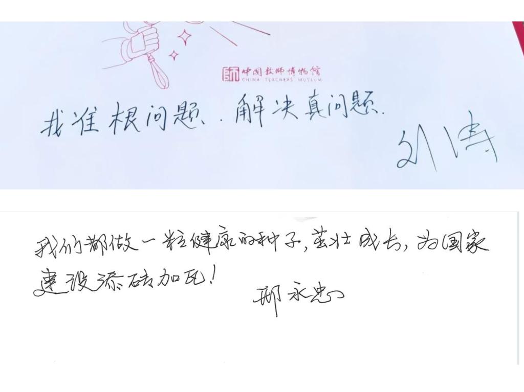 与会师生在心语卡上留下寄语。刘涛教授和邢永忠教授对本次活动的立意和价值表示高度肯定,刘涛寄语青年师生要“找准根问题,解决真问题”,邢永忠鼓励青年师生要“做一粒健康的种子,为国家建设添砖加瓦”。