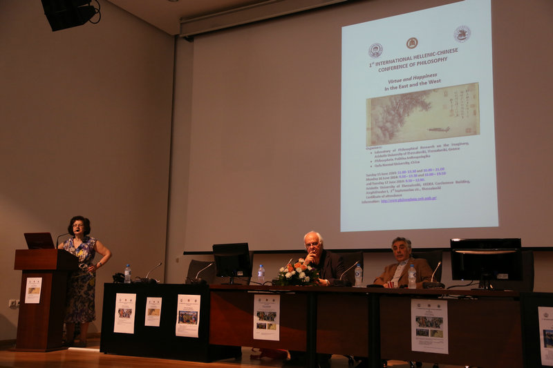 6月15-17日,由我校与希腊亚里士多德大学、希腊“哲学研究”杂志社共同主办的第一届中国-希腊哲学国际学术研讨会在希腊塞萨洛尼基的亚里士多德大学举行。会议的主题是“道德与幸福—在东方与西方”。来自中国、美国、英国、德国、塞浦路斯、中国香港等国家和地区的近20所大学和研究机构的40余名代表以及亚洲与比较哲学协会Society for Asian and Comparative Philosophy)的会长安乐哲、副会长王蓉蓉等参加了会议。