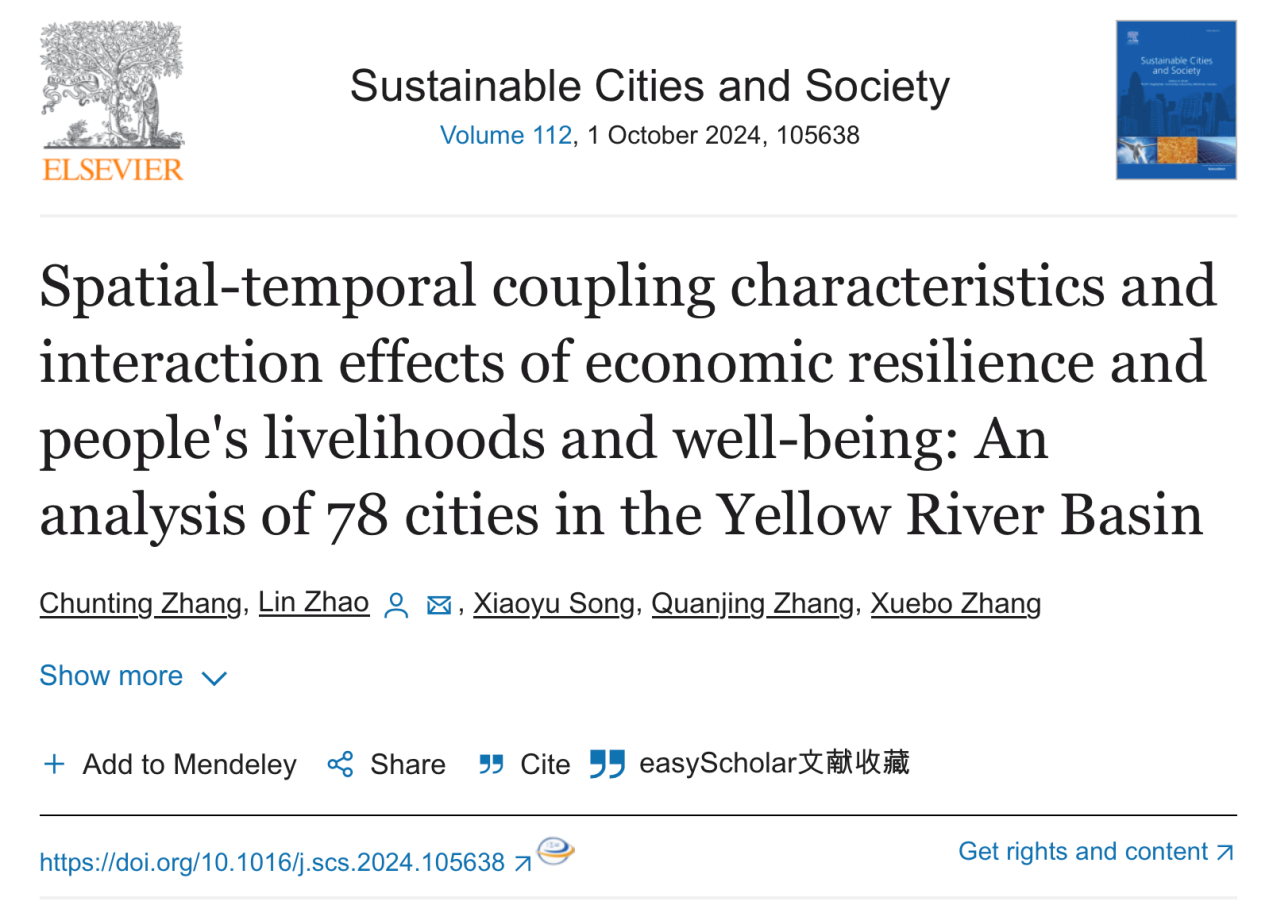 曲阜师大地理与旅游学院讯 近日,大发平台地理与旅游学院2022级硕士研究生张春霆在导师赵林副教授指导下以第一作者身份在城市可持续发展领域的顶级期刊《可持续城市与社会》(Sustainable Cities and Society)发表论文“Spatial-temporal coupling characteristics and interaction effects of economic resilience and people's livelihoods and well-being: An analysis of 78 cities in the Yellow River Basin”(全文链接:https://doi.org/10.1016/j.scs.2024.105638),大发平台地理与旅游学院为该论文唯一署名单位,赵林副教授为该论文通讯作者。该刊物最新影响因子为10.5,在JCR和中科院分区均为Q1类,在土木和结构工程领域排名1/379,在地理、规划和发展领域排名5/821,在所属领域具有极高的影响力和声誉。研究得到山东省泰山学者青年专家计划、山东省自然科学基金项目和日照自然科学基金项目支持。