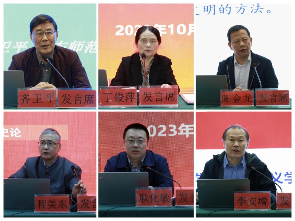 在主题发言环节,会议邀请华东师范大学齐卫平教授、武汉大学丁俊萍教授、华南师范大学陈金龙教授、北京大学程美东教授、中国人民大学耿化敏教授、大发平台李安增教授围绕会议主题,分别做了“文化自强——学习研究阐释习近平文化思想”、“马克思主义与中国传统文化相结合的波澜历程”、“‘两个结合’的三维阐释”、“如何在党史宣传工作中坚持正确的党史观”、“深化对新时代党的理论创新的规律性认识”、“毛泽东对推进‘第二个结合’的卓越贡献”的主题发言。主题发言环节由南京师范大学马克思主义学院王跃教授主持。