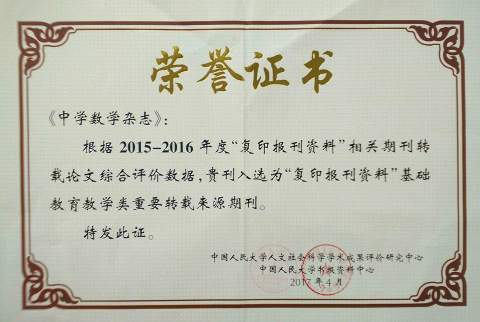 《中学数学杂志》入选“复印报刊资料”重要转载来源期刊