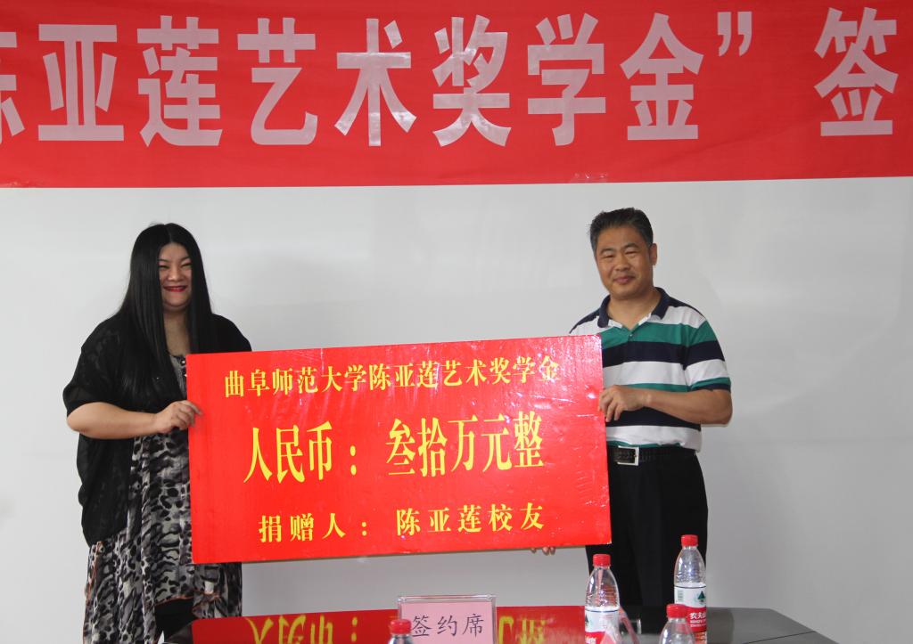 优秀校友陈亚莲捐资30万元设立艺术奖学金