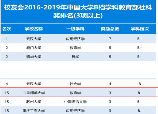 曲阜师大教育学、马克思主义理论等学科在多个排行榜中表现亮眼