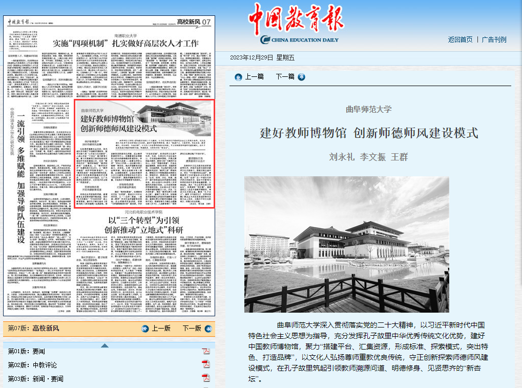 《中国教育报》刊文报道大发平台建好教师博物馆 创新师德师风建设模式
