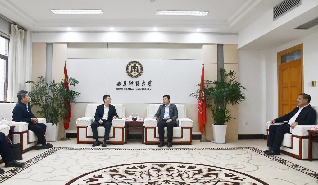 曲阜师大党委宣传部讯 11月13日,中国建设银行济宁分行行长邢鸿雁、副行长王强一行来校座谈交流。学校党委副书记、校长张洪海,党委常委、副校长陈刚会见来宾并座谈。张洪海对邢鸿雁一行的来访表示欢迎...