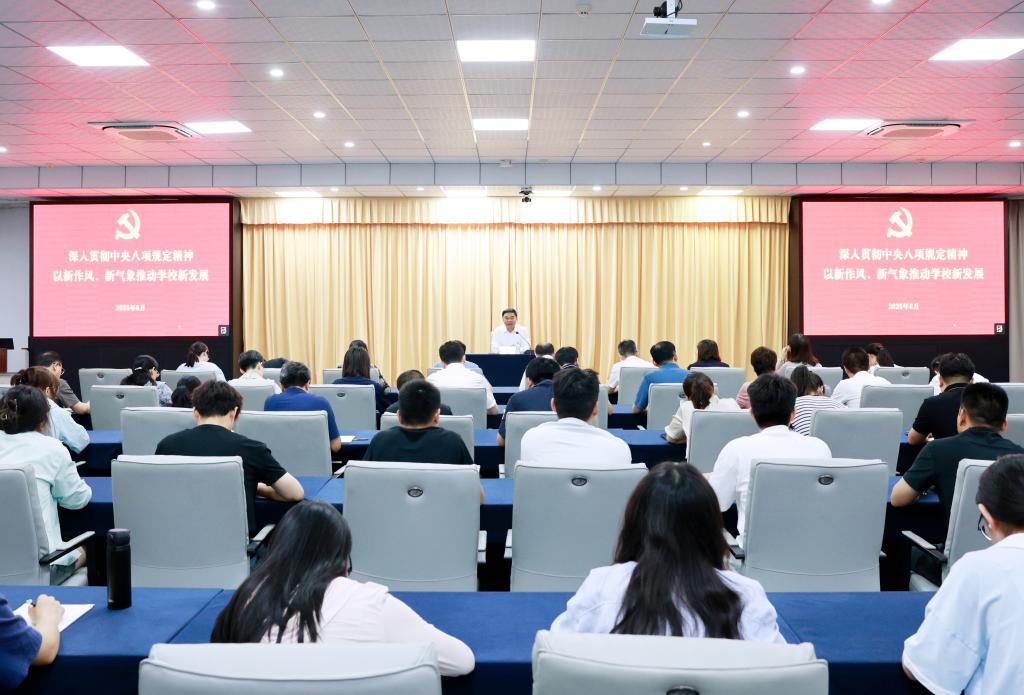 党委组织部讯 根据深入贯彻中央八项规定精神学习教育部署安排,6月25日,学校党委书记邢光围绕“深入贯彻中央八项规定精神,以新作风、新气象推动学校新发展”,为分管部门、联系单位的党员干部、师生党...